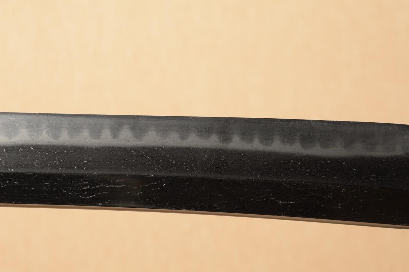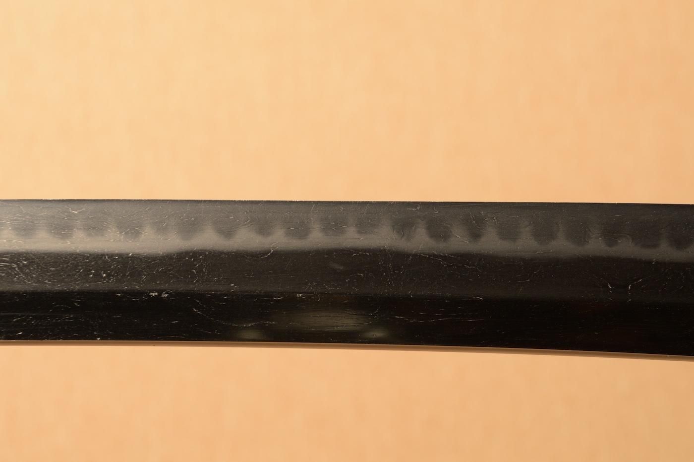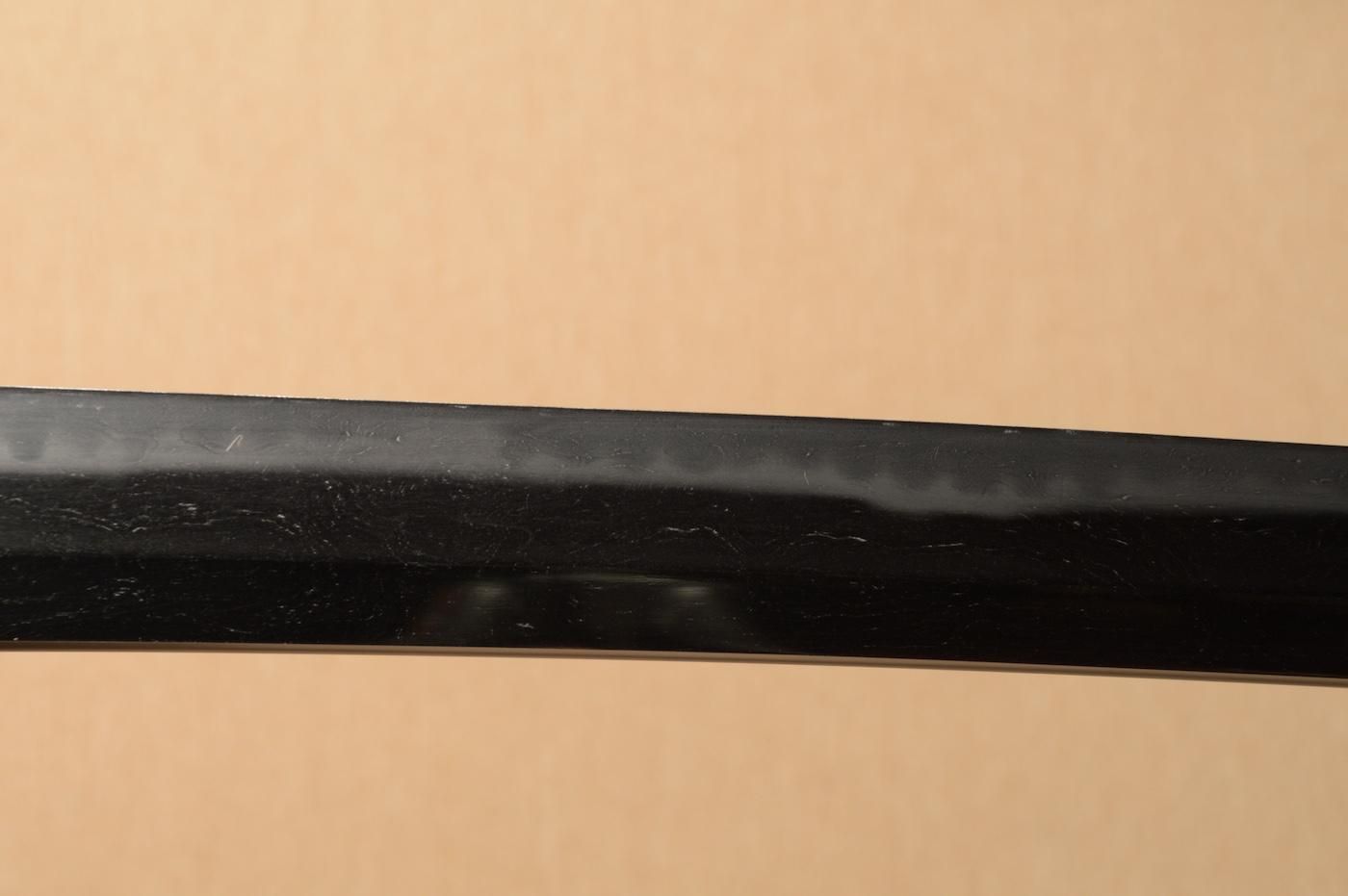 地肌は板目肌が大変良く現れ、刃文は長光特有の、焼き幅の揃った互の目を焼き刃中にも足が入り、砂流し等の働きが見える美しく健全な刀身です。