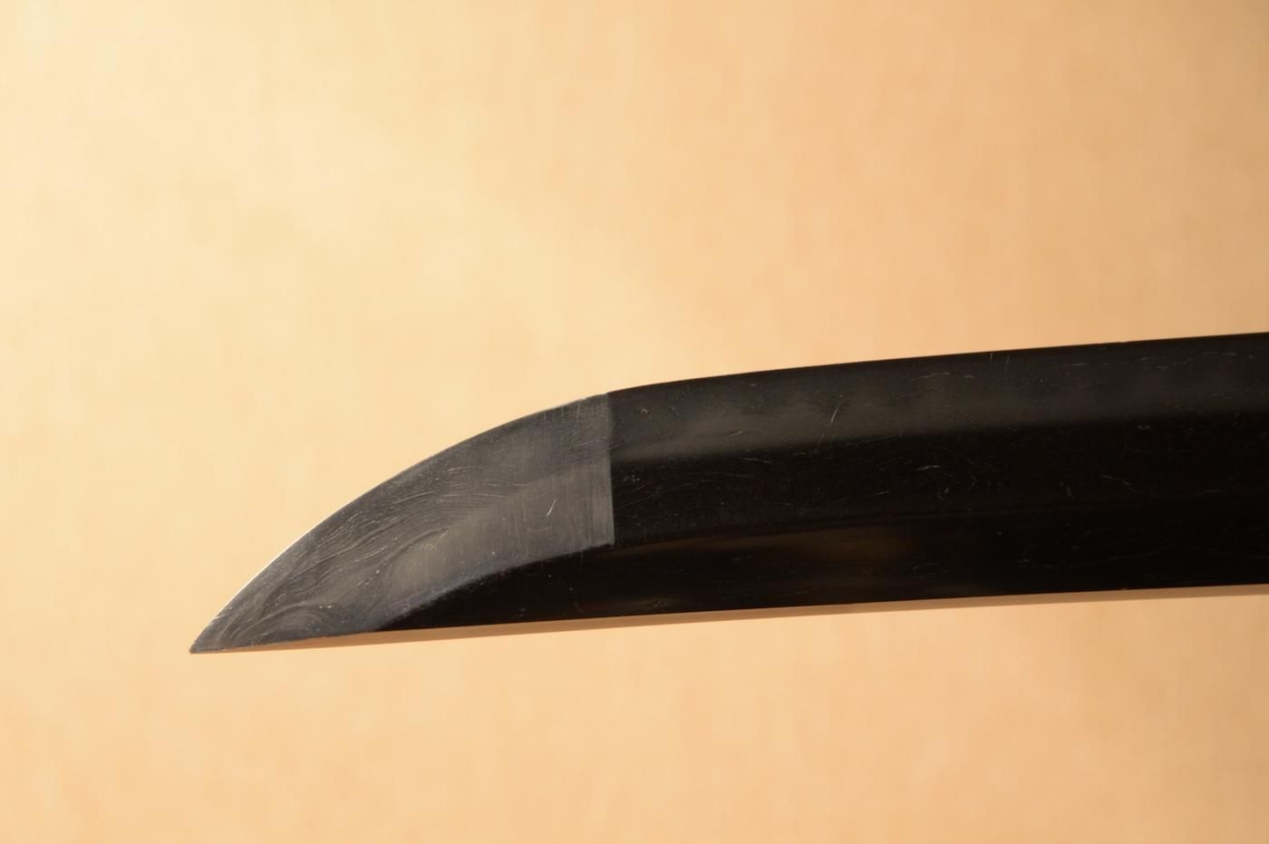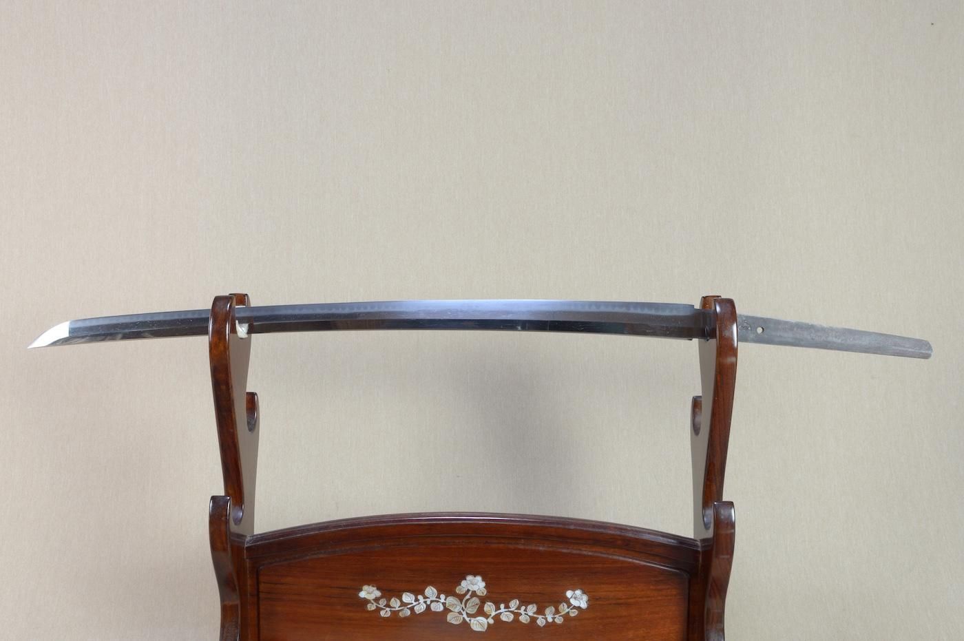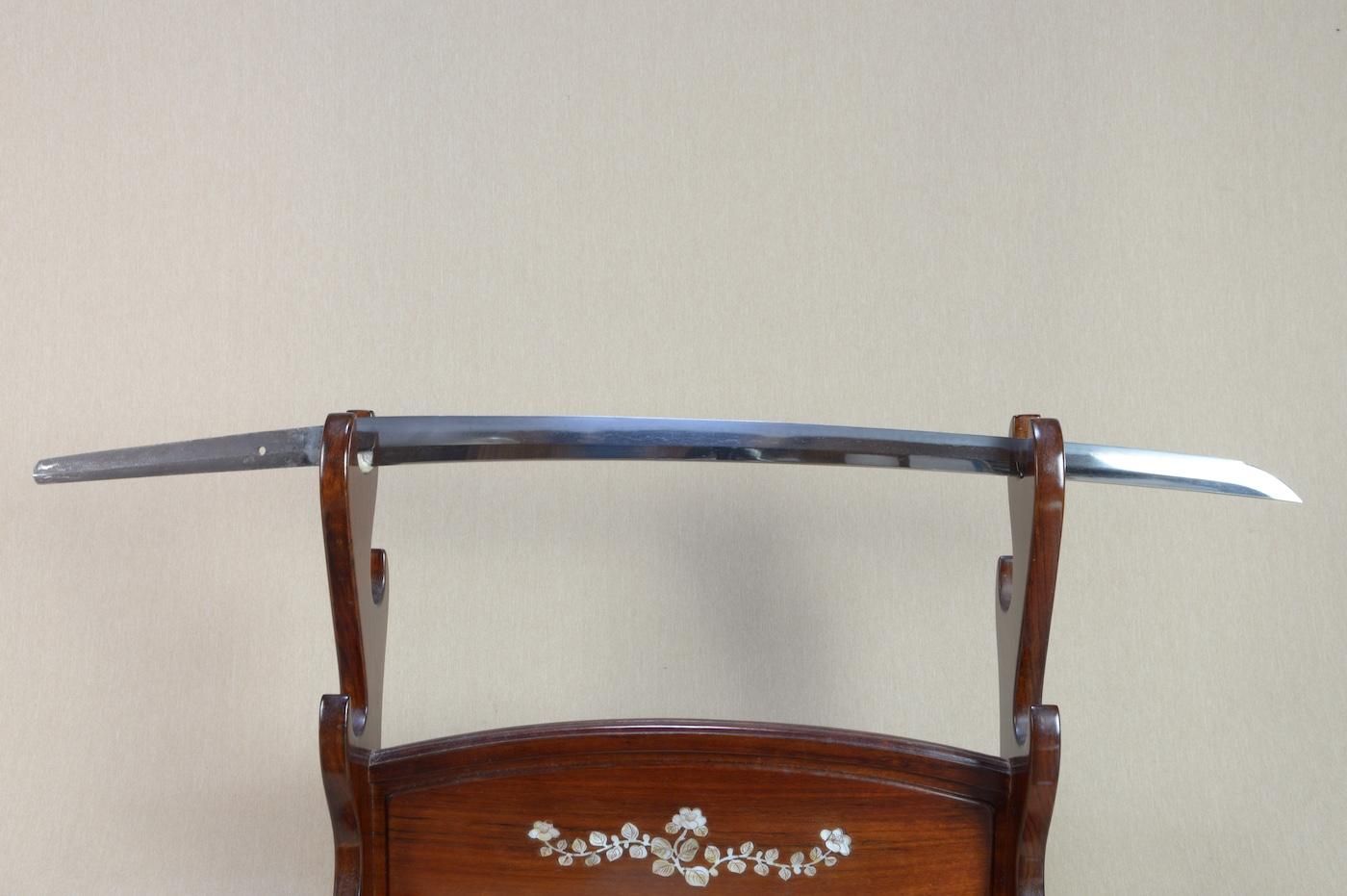地肌は板目肌が大変良く現れ、刃文は長光特有の、焼き幅の揃った互の目を焼き刃中にも足が入り、砂流し等の働きが見える美しく健全な刀身です。