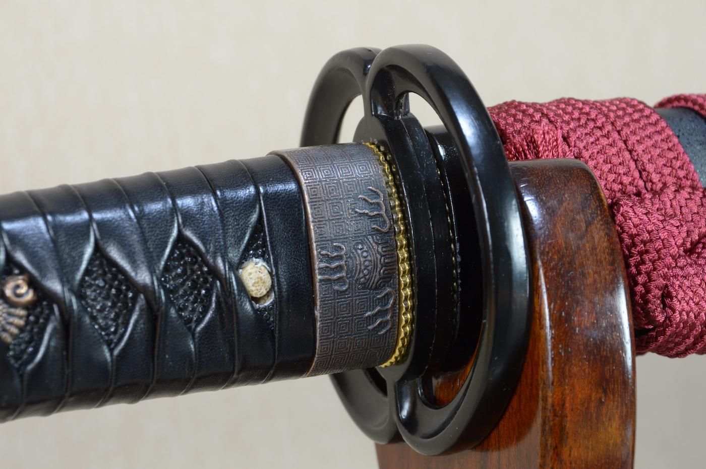 柄は左手がやや太目で握り良く造られ柄内のガタツキも無く、直ぐに居合、試斬に使用して頂けます。